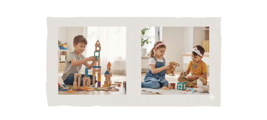Les activités de construction, comme les blocs, sont également cruciales. Elles permettent de tester des hypothèses et d’observer des résultats concrets. Si une tour tombe, l’enfant doit analyser pourquoi. Parallèlement, les jeux symboliques développent des compétences sociales. Jouer à la marchande ou au vétérinaire renforce l’empathie et le langage. L’enfant apprend à organiser une narration et à interagir avec les autres de façon constructive.
