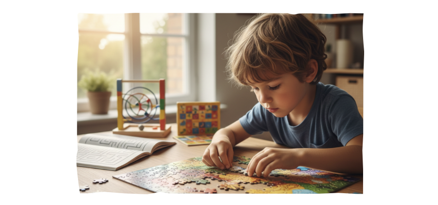 Les puzzles sont particulièrement adaptés à cet exercice. L’enfant doit analyser les formes avec précision et observer les nuances de couleurs. Il doit tester des solutions, se tromper, puis ajuster son geste. Les labyrinthes, les jeux d’énigmes ou les jeux de type « Cherche et trouve » fonctionnent sur le même principe. Chaque petite victoire, comme une pièce enfin posée, renforce l’envie de continuer. Cela libère de la dopamine, ce qui soutient l’effort sur la durée.